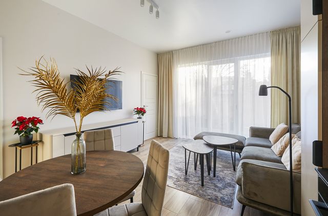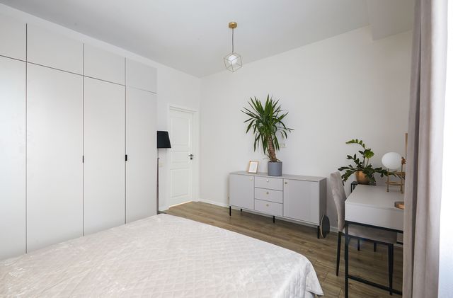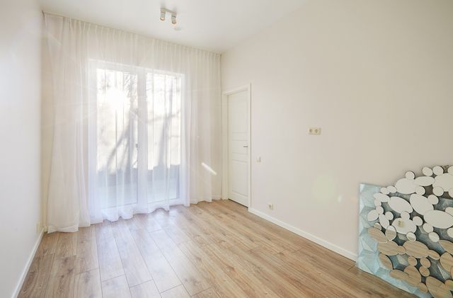LABAI PATOGUS IŠPLANAVIMAS. Bendras plotas 56,06 kv.m. svetainė sujungta su virtuve 25,18 kv.m., miegamieji 15,26 kv.m. ir 10,60 kv.m., san. mazgas 4,38 kv.m., pagalbinė patalpa 0,84 kv. m., butui priklauso terasa su nedideliu kiemeliu, parkavimo vieta automobiliui.