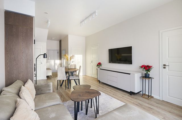 PARDUODAMAS BUTAS DVIBUČIO TIPO NAME, 2025 m. STATYBOS, PILNAI ĮRENGTAS SU BALDAIS IR BUITINE TECHNIKA.