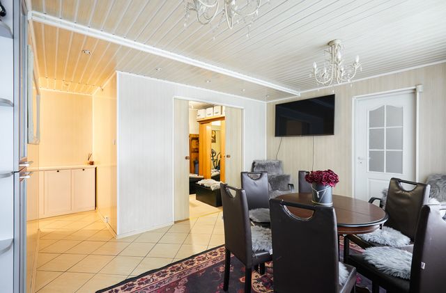 - svetainė, virtuve, koridorius ir vonios patalpa iškloti plytelėmis,