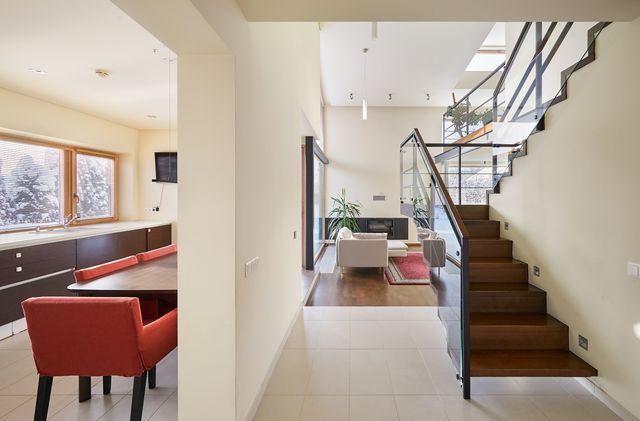 Bendras parduodamo namo plotas 193kv.m. PATOGUS IŠPLANAVIMAS GYVENTI. I-as aukštas - erdvi aukštomis lubomis svetainė su valgomuoju, lubų aukštis daugiau nei 4 metrai – tai tikrai sukurią smagų erdvės pojūtį. Svetainėje Jūsų vakarų jaukumui įrengtas židinys su ortakiais. Dideli vitrininiai langai įsileidžia daug šviesos, kas sukuria ramią jaukią atmosferą. Svetainės plotas 31kv.m. iš jos patenkama į erdvią 16kv.m. virtuvę arba holą. Pirmame aukšte taip pat yra svečių WC su praustuvu, katilinė 5kv.m., sandėliukas 11kv.m., garažas dviem automobiliams 32kv.m. ir lauko terasa po stogu 14kv.m. šalia išėjimo iš svetainės. Antrą aukštą sudaro: trys atskiri miegamieji 17kv.m. su didele drabužine, 15kv.m. ir 13kv.m. kambariai, didelis sanmazgas su dušu, vonia, WC, bei laisvalaikio praleidimui ir sveikatinimuisi įrengta pirtim. 10kv.m., vaikų sanmazgas su WC ir dušu, praeinamas darbo kambarys (svečių miegamasis) 13kv.m..